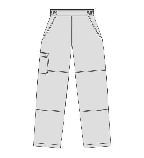 Munkaruha modell leírás: 10110038 női nadrág. Gumis derekú svédzsebes nadrág, foltzsebes hátsózsebbel, oldalzsebbel, elején térderősítéssel, gumis derékpánttal.